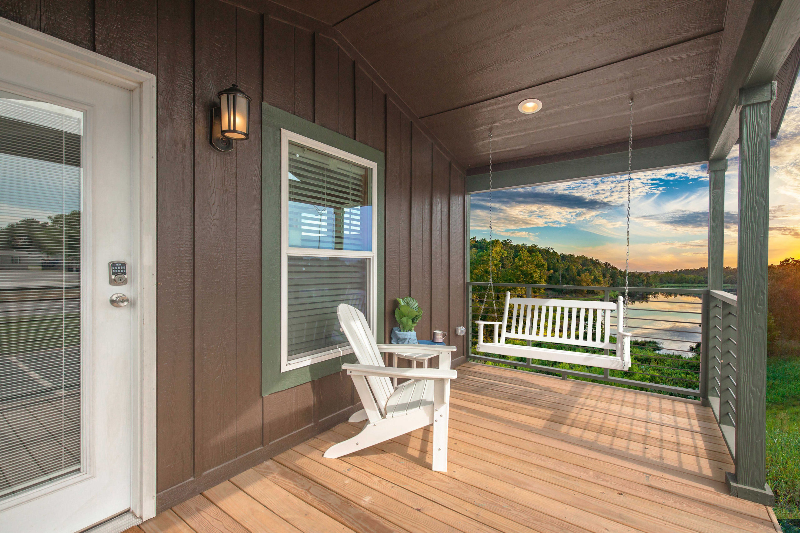 With the Mockingbird floor plan, you have the option to add another set of tower dormer and clerestory windows in the Primary Bedroom. You can even add a back porch, like the pictures for this model show. You can also add Smart Technology options like a keyless entry, front entrance light with camera, smart lighting, smart smoke alarms, and a smart thermostat.