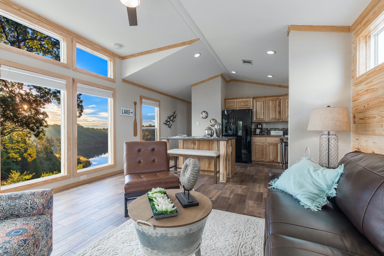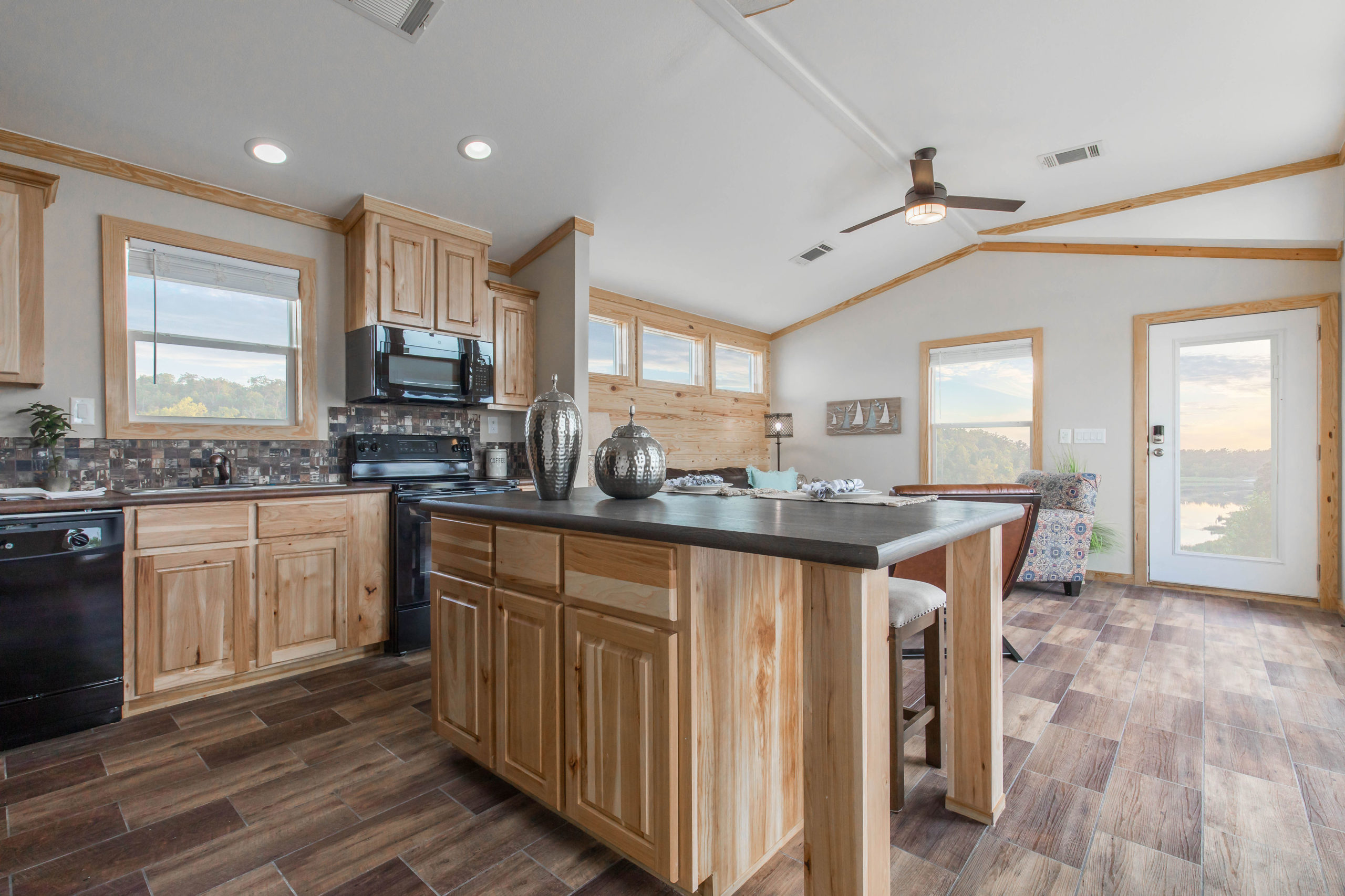Smart Cottages can be customized to fit your style and needs. You can choose cabinet, tile, counter tops, flooring, interior, and exterior colors! If you prefer more of a modern farmhouse look – you may opt for white shiplap, white cabinets, white wood molding, white doors, and grey toned flooring. If you like more of the rustic look, you may want to go for the southern yellow pine package which offers hickory cabinets, pine doors, and pine trim. Check out your full range of Smart Cottage Decorating Choices.